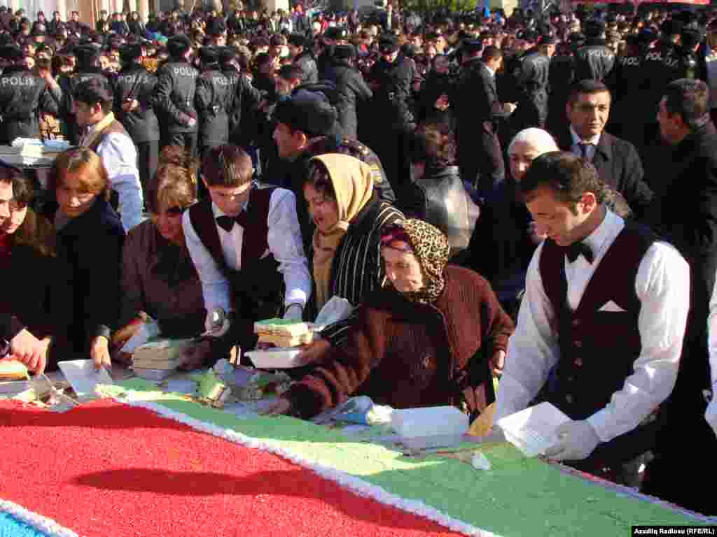 Эта традиция повторяется в Гяндже уже третий год подряд, и каждый год торт бывает длинее на один метр