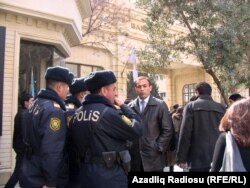 14.50 Сотрудники РадиоАзадлыг сообщают, что заместитель начальника Главного управления полиции города Баку Яшар Алиев также находится здесь. Он сидит в полицейской машине перед зданием университета.