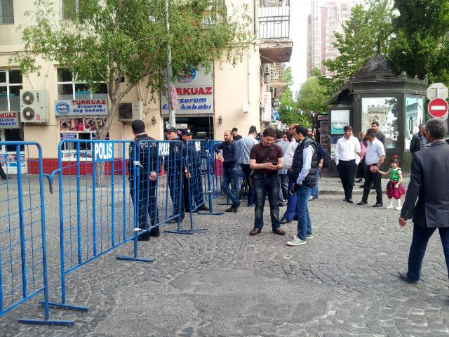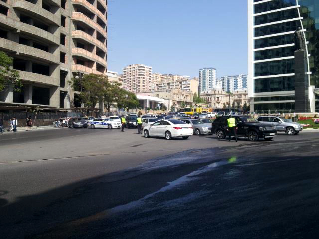 Heydər Əliyev Sarayı və «Qış parkı»na aparan yollarda nəqliyyat və piyadaların hərəkəti məhdudlaşdırılıb. Keçidlərdə polis kordonu düzülüb. |