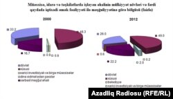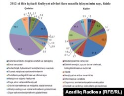Dövlət Statistika Komitəsinin 2012-ci ilin yekunlarına olan məlumatına görə, Azərbaycanın 4 milyon 688 min nəfər iqtisadi fəal əhalisindən 4 milyon 445 min nəfəri işləyir, 243 min nəfərsə işsizdir. İşləyənlərin böyük əksəriyyəti – 3 milyon 287 min nəfəri özəl sahədə çalışır.