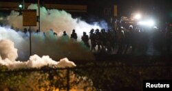 ABŞ polisi ötən gecə Ferqyuson şəhərində etiraz aksiyasını dağıtmaq üçün tüstü və göz yaşardan qazdan istifadə edib. 150-ə yaxın aksiyaçı şəhərdə fövqəladə vəziyyət elan olunmasına baxmayaraq gecə yarısı toplaşdıqları yerdən kənarlaşmaqdan imtina ediblər.