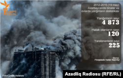 Fövqəladə Hallar Nazirliyinin 2012-2015-ci illərə dair (mayın 19-da baş vermiş yanğın da daxil olmaqla) statistikası əsasında hazırladığımız infoqrafika:
