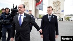 Ölkə Nasist Almaniyası üzərində qələbənin 72 illiyini qeyd edir. Arc de Triomphe-də təşkil edilən bu mərasimə yola salınan prezident Francois Hollande Macronla birgə gəlib. Hollande seçki kampanisyası vaxtı Macronun xeyrinə təbliğat aparırdı.