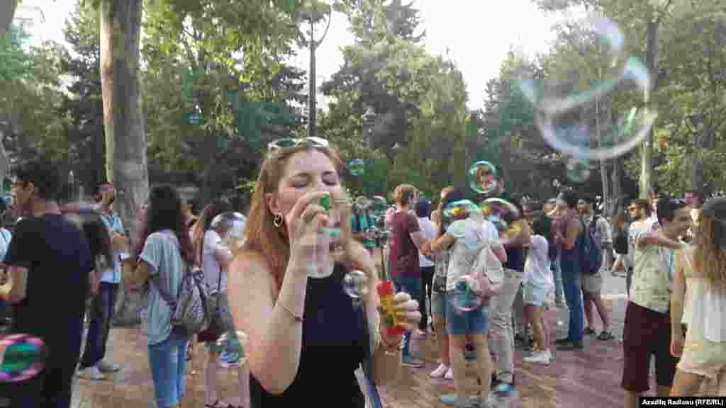 Bakıda bir qrup gənc köpük festivalı keçirib. Gənclərə şəhər sakinləri də qoşulub.