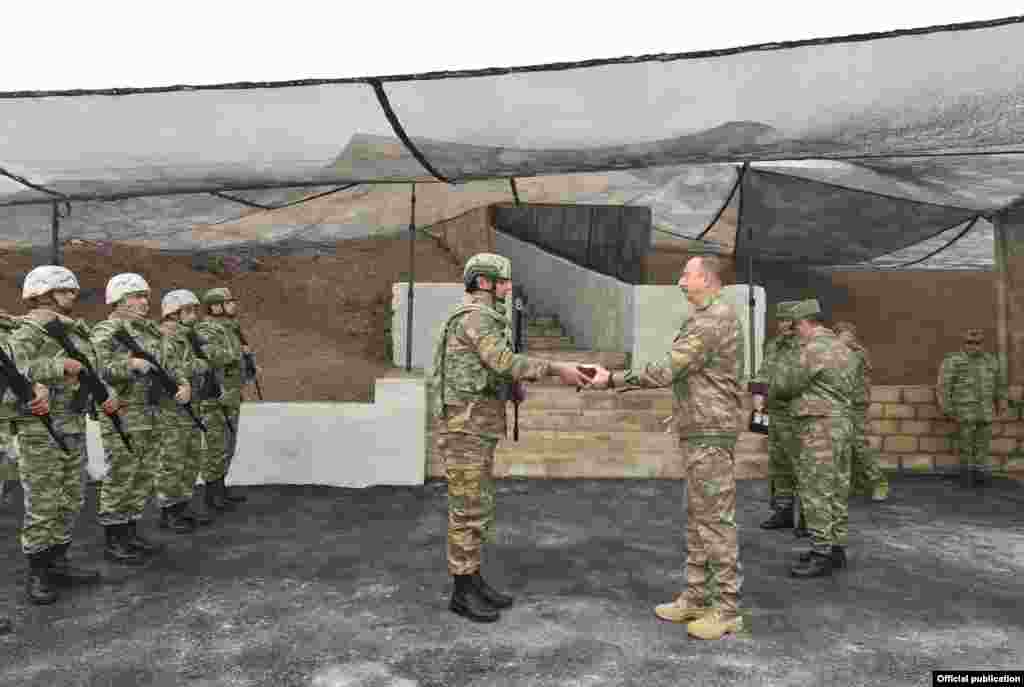 Sonra İlham Əliyev döyüş tapşırığını yerinə yetirərkən xüsusi fərqlənmiş bir qrup hərbçiyə qiymətli hədiyyələr təqdim edib.