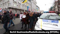 Aksiyanın önündə Saakaşvilinin "Yeni qüvvələr hərəkatı"nın fəalları David Sakvarelidze və Ali Radanın deputatı Yeqor Sobolev addımlayıblar.