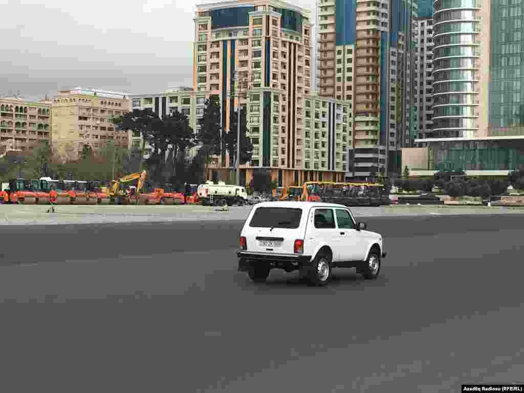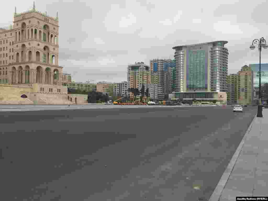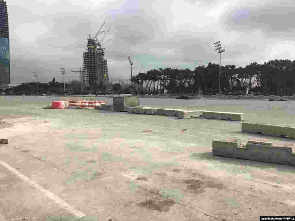 Azadlıq Meydanı növbəti dəfə dəmir hasarlarla əhatələnib. Hansı səbəbdən yolun böyük bir hissəsinin bağlandığı deyilmir. Sadəcə, ərazidə iritonnajlı yük maşınları var, yolun bir hissəsini daş-çınqıl, betonlarla bağlayıblar. Yalnız kiçik bir hissədən avtomobillər hərəkət edir.