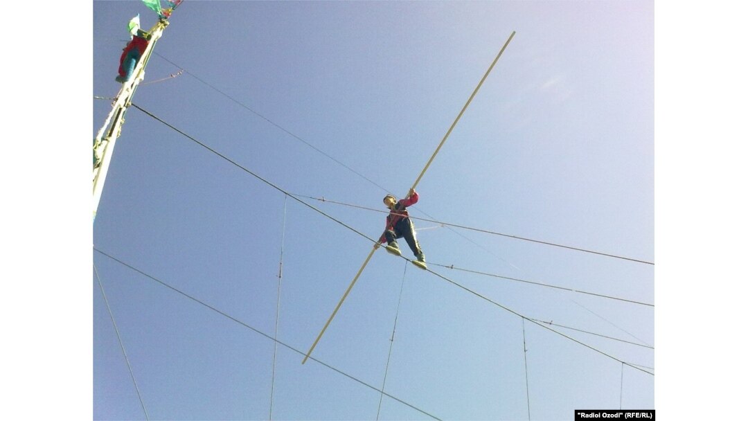 Kəndirbaz ip üstündədir. Qollarını yana açıb, nə cürsə müvazinətini saxlayır.